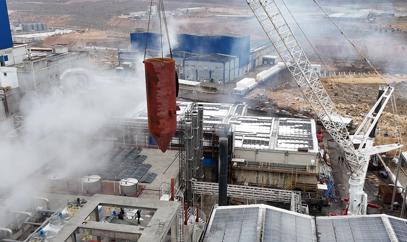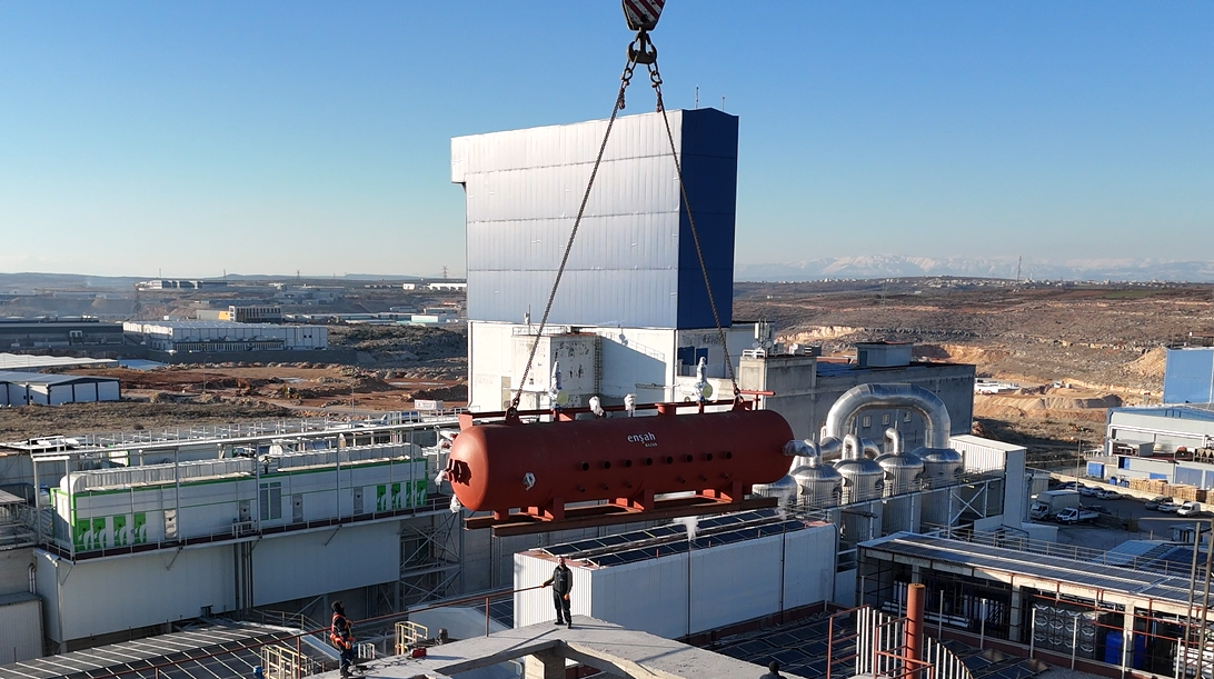 Gaziantep lokasyonunda 30 ton/h - 10 barg kapasitesine sahip BİYOKÜTLE YAKITLI DÖNER IZGARALI BUHAR KAZANININ kurulumu, yağmur, kar, çamur demeden tüm hızıyla devam ediyor.